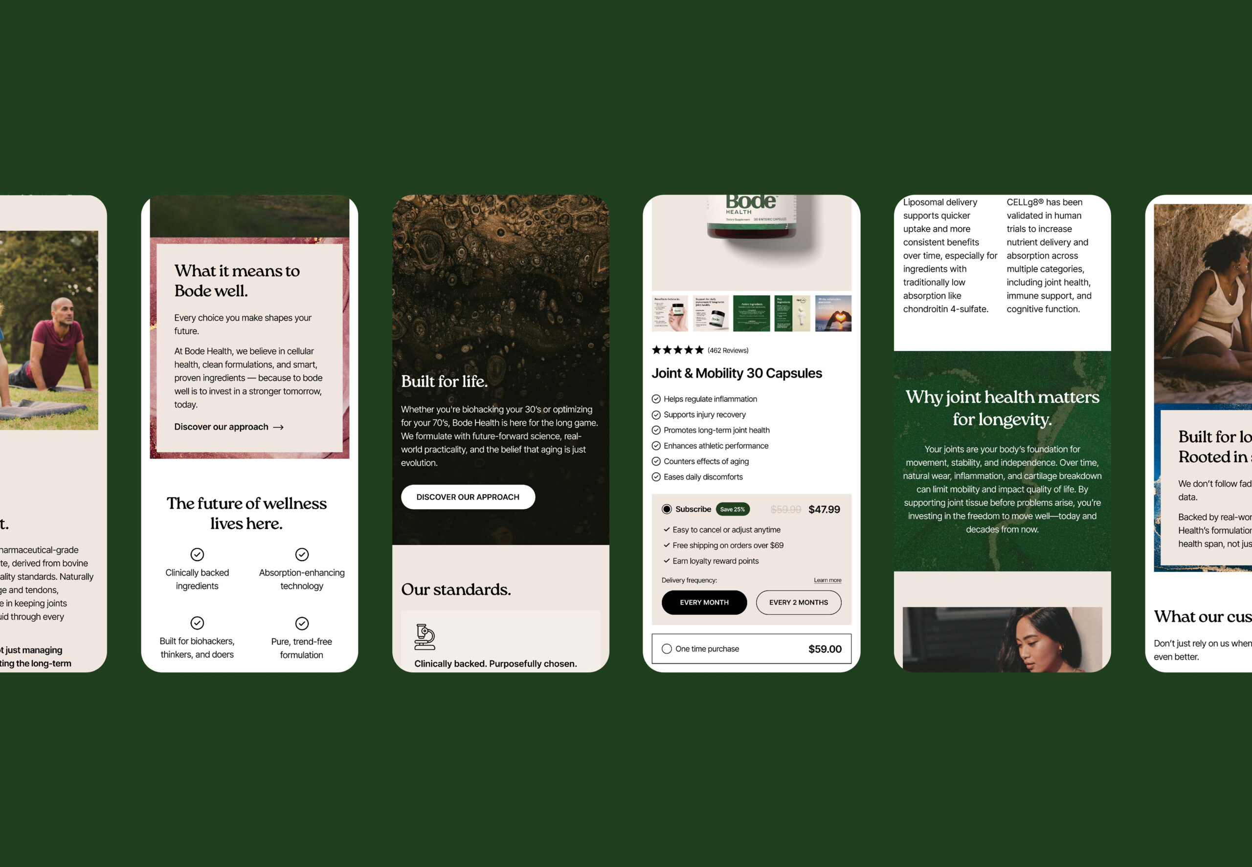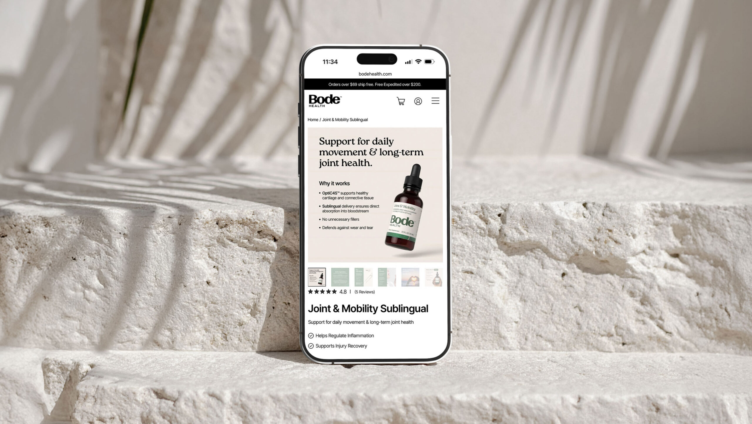 Bode Health creates supplements for joint care and everyday wellbeing. They needed a brand that felt premium, natural, and grounded in health.
