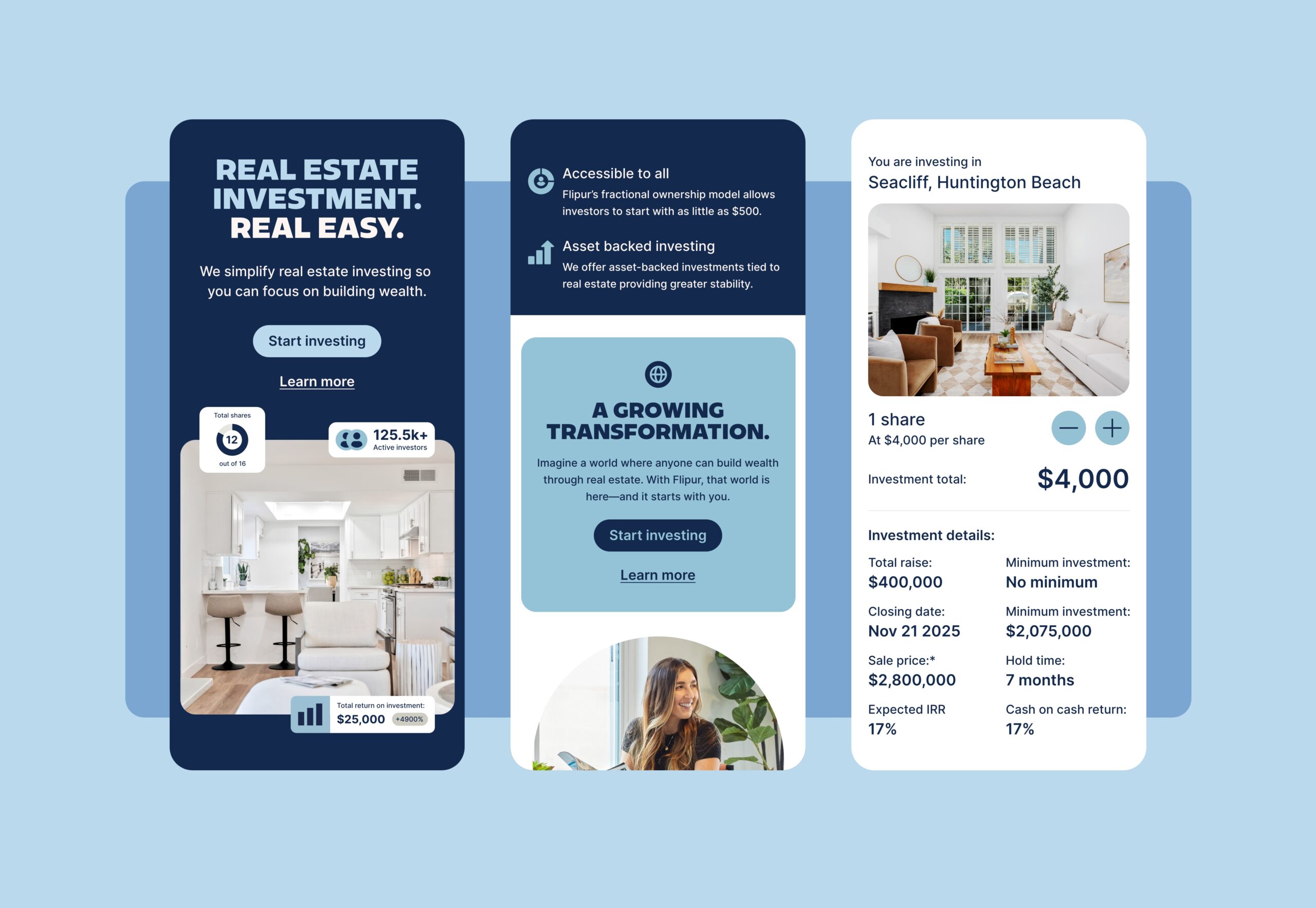 Flipur is opening up property investment to a wider audience, making it easy for anyone to get involved in property “flips.” We worked with Flipur to refresh their brand and build a clean, user-friendly web app that simplifies the whole process. From branding and identity through to full website design and development, we created a digital experience that feels accessible, clear, and easy to use. Their platform connects operators looking to raise funds with investors ready to take part.