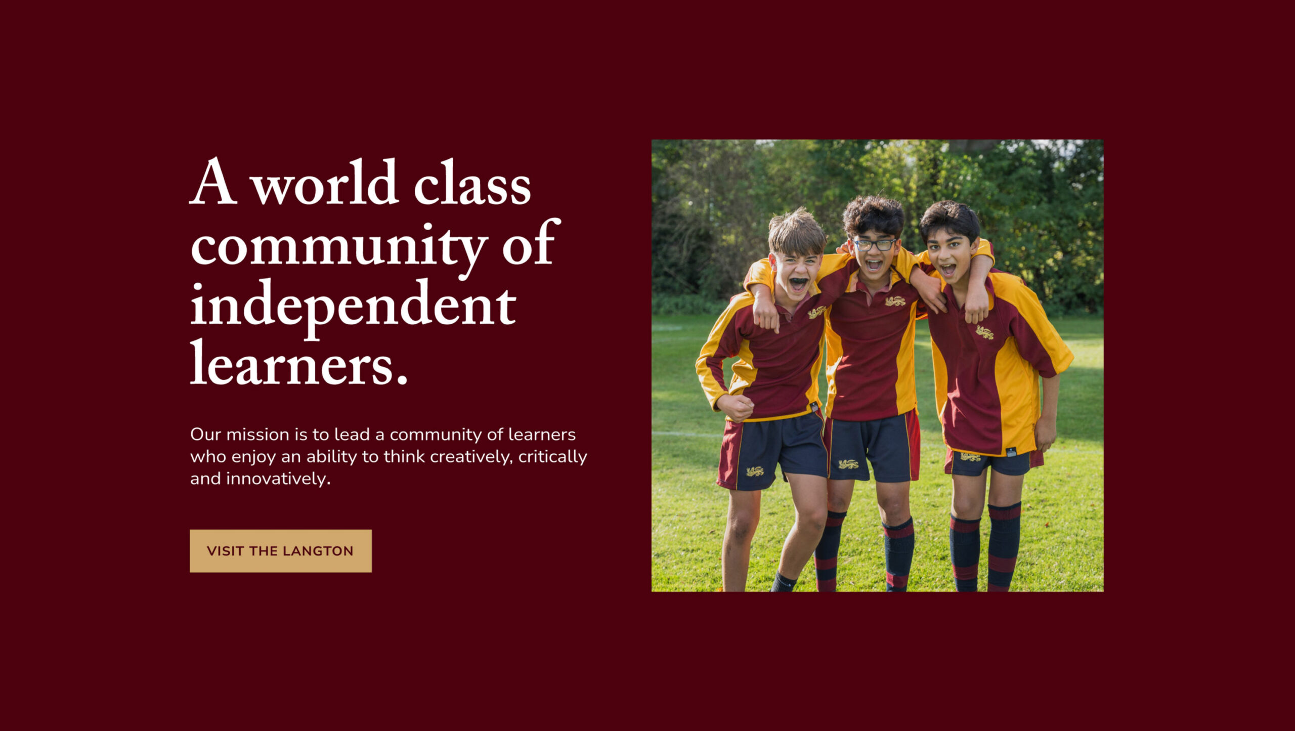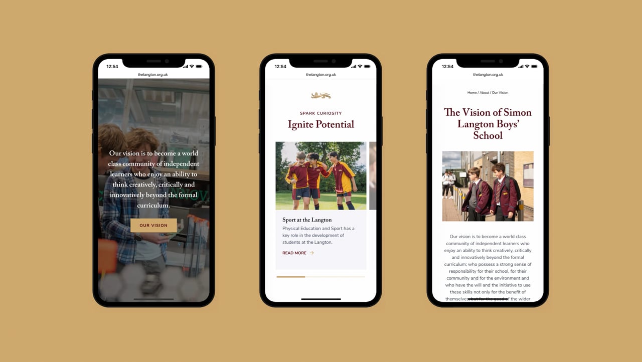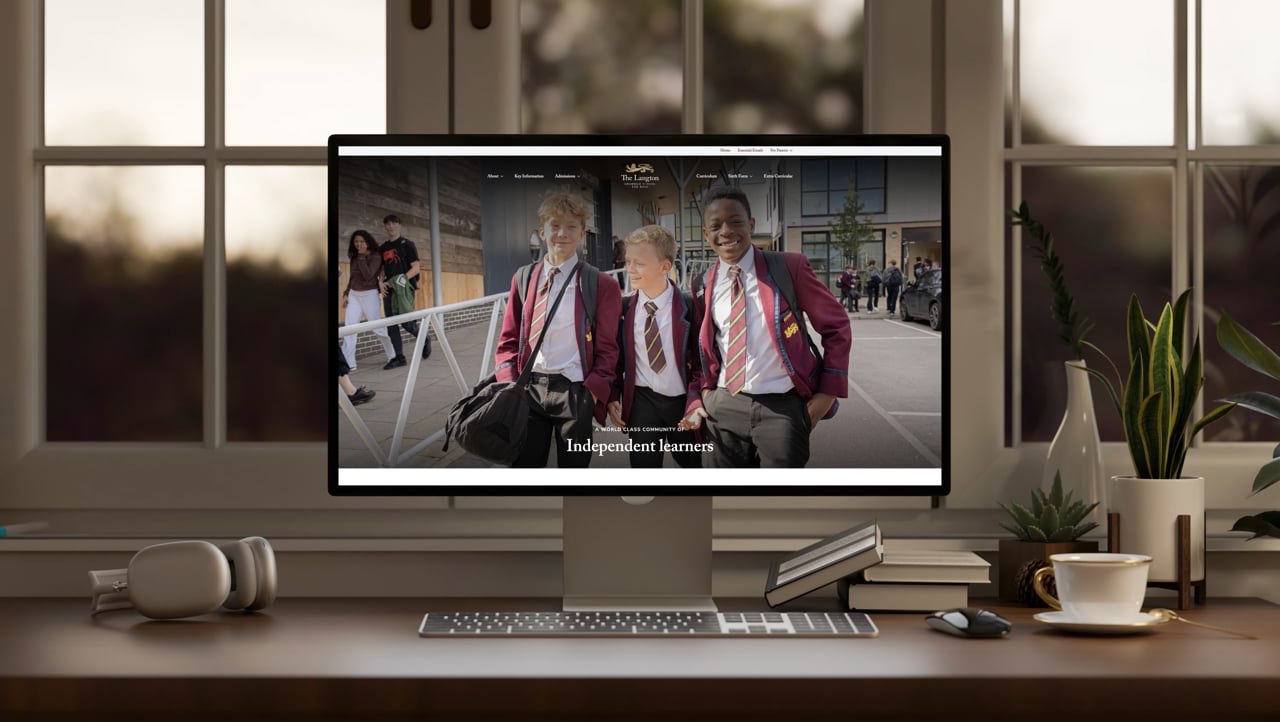 When The Langton approached us to redevelop their website, we saw an opportunity to bring clarity and consistency to the brand across the whole school. We refined and modernised the identity; updating the logo and establishing a clear set of fonts and colours that carried through to a new website. A dedicated photoshoot helped capture the school’s character, with the maroon blazers becoming a unifying visual thread throughout. Alongside the site, we delivered a comprehensive brand guide and supported the rollout across signage and brochures, ensuring everything felt cohesive moving forward.