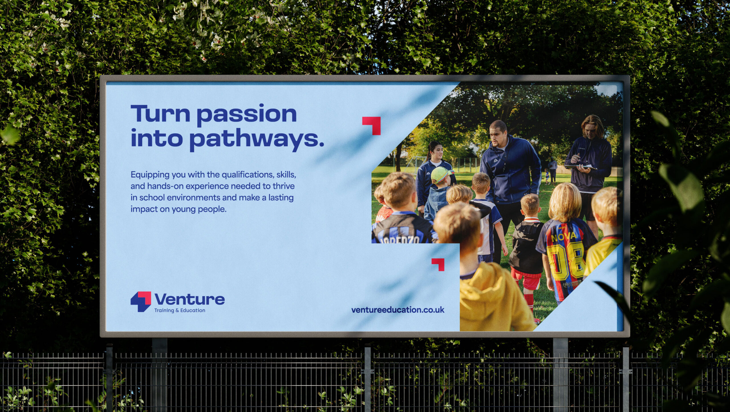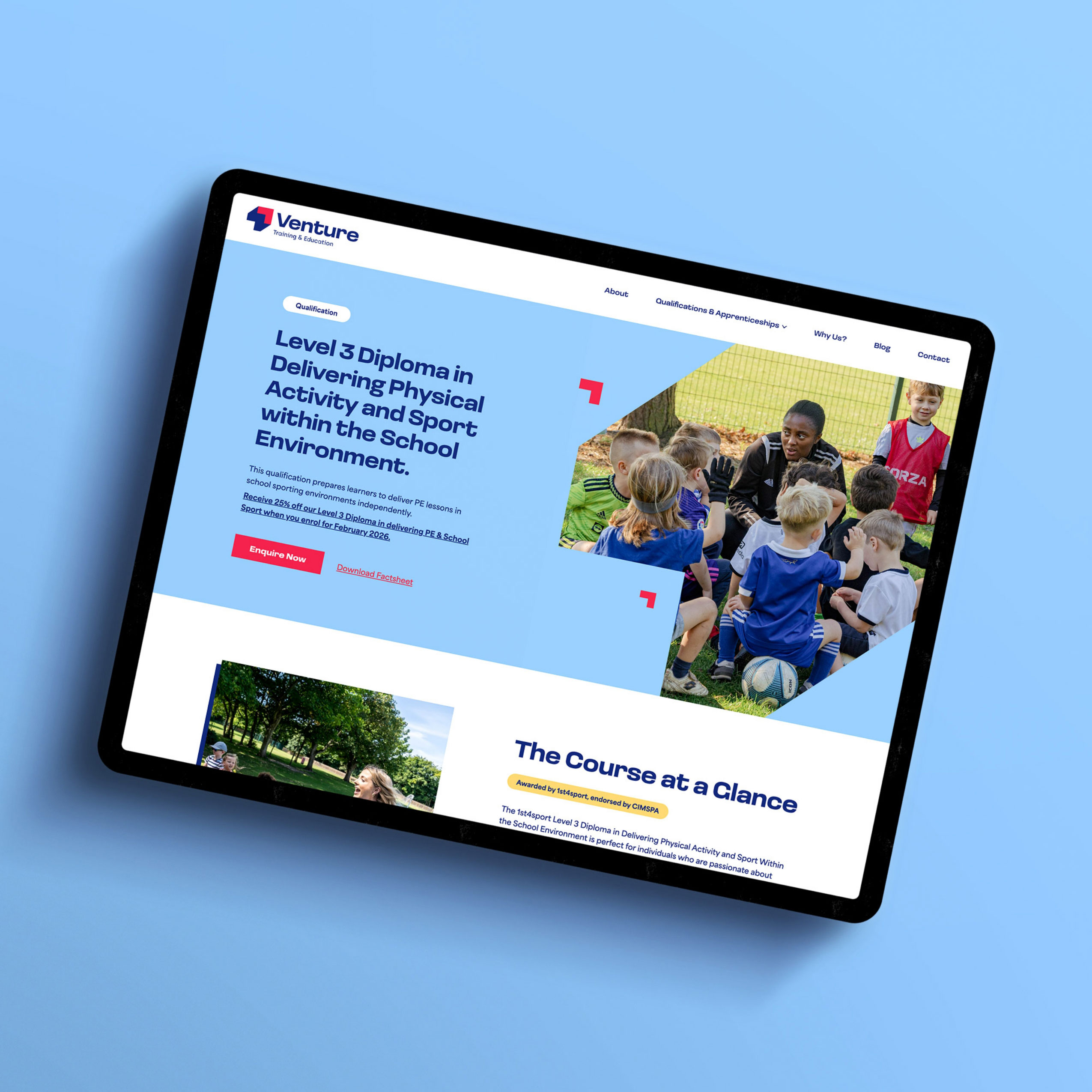 Venture Education bridges the worlds of education and sport, providing specialist courses for the next generation of coaches, educators, and practitioners. We built the brand from the ground up — creating an identity that feels credible and ambitious in equal measure.